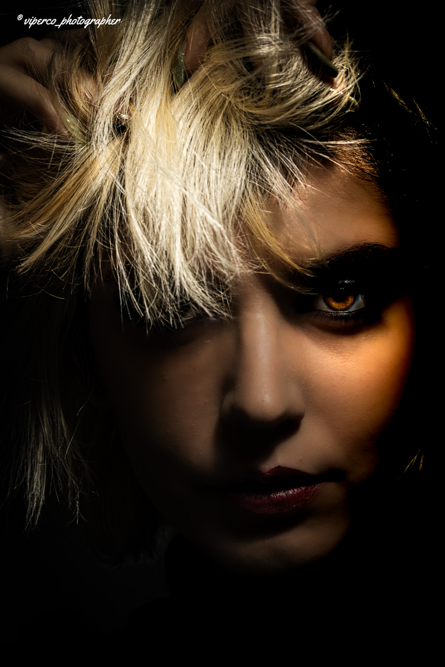 Rossana entiende la sombra. No le teme. Sabe cuándo cubrir el rostro y cuándo dejar que la luz se cuele solo lo justo. En clave baja se mueve como pez en el agua: misterio, control, intención. Y cuando aparece el color —ese amarillo que estalla, esos labios rojos que mandan— lo hace con carácter, sin pedir permiso.