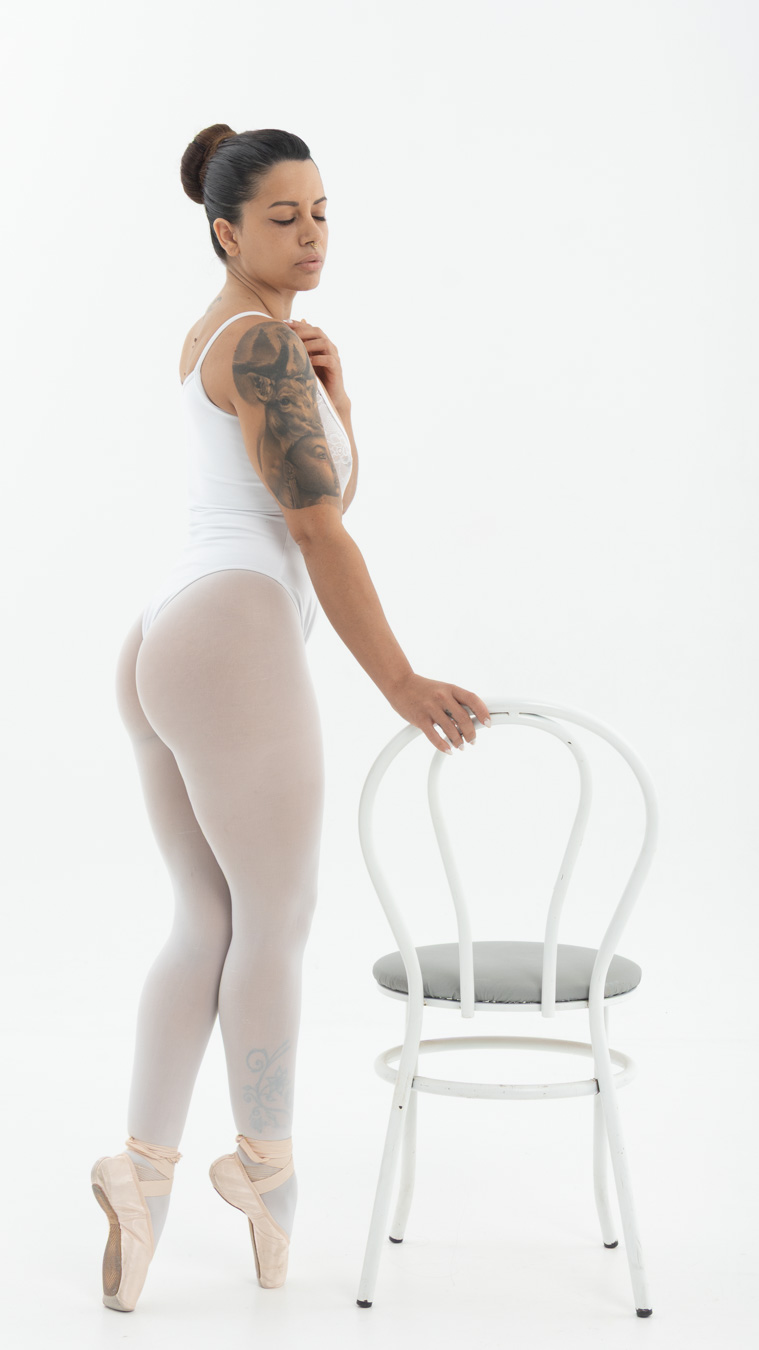 Se nota incluso en el silencio del estudio, donde la luz la rodea y ella la doma con precisión de bailarina y la intensidad de una actriz que siente desde dentro. Tatiana no muestra una forma: encarna un estado. Es la encarnación de la introspección, el equilibrio entre control y abandono.