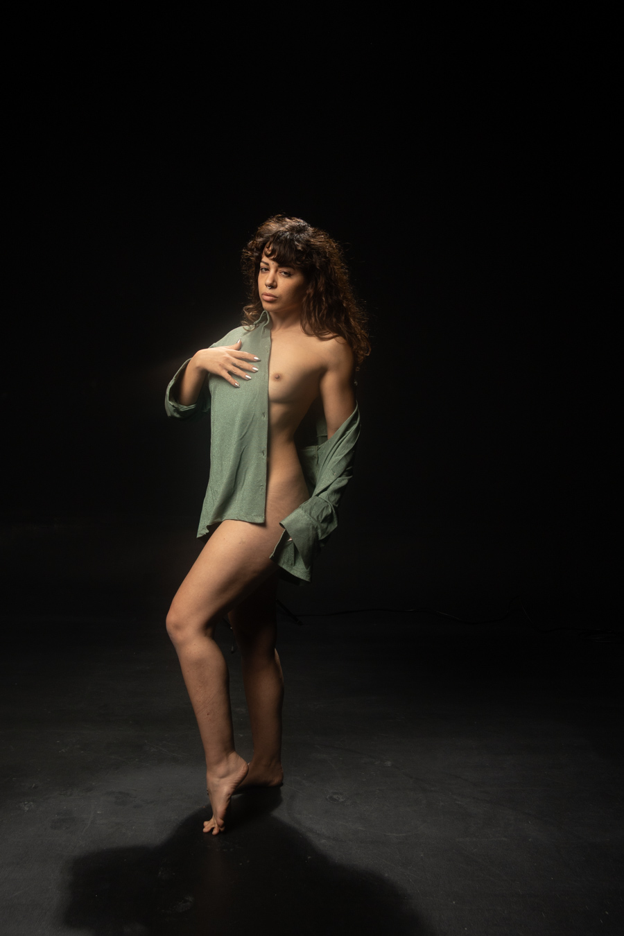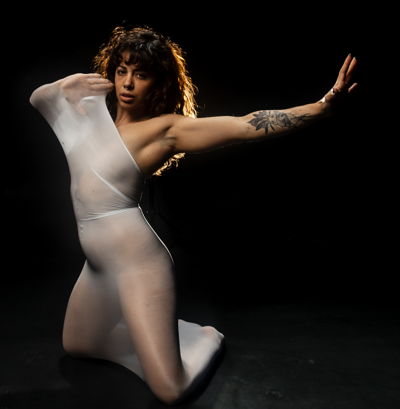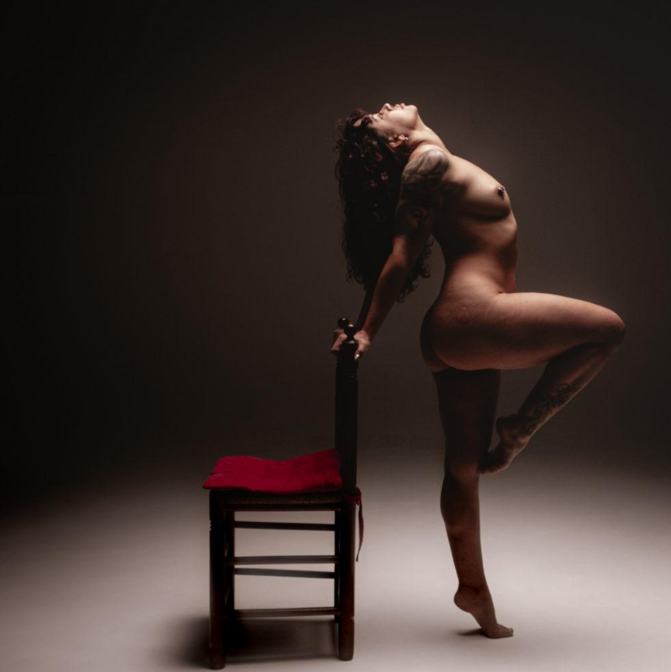 Su cuerpo habla un idioma antiguo, donde cada músculo es una palabra y cada gesto, una confesión. No interpreta, se transforma. Lo que en otros sería una pose, en ella es una afirmación de existencia: un pulso que vibra entre la fuerza y la fragilidad.